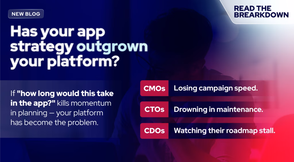 So you scale back the idea. Or skip the App entirely. Your most engaged customers miss out because the platform can’t move at campaign speed.
